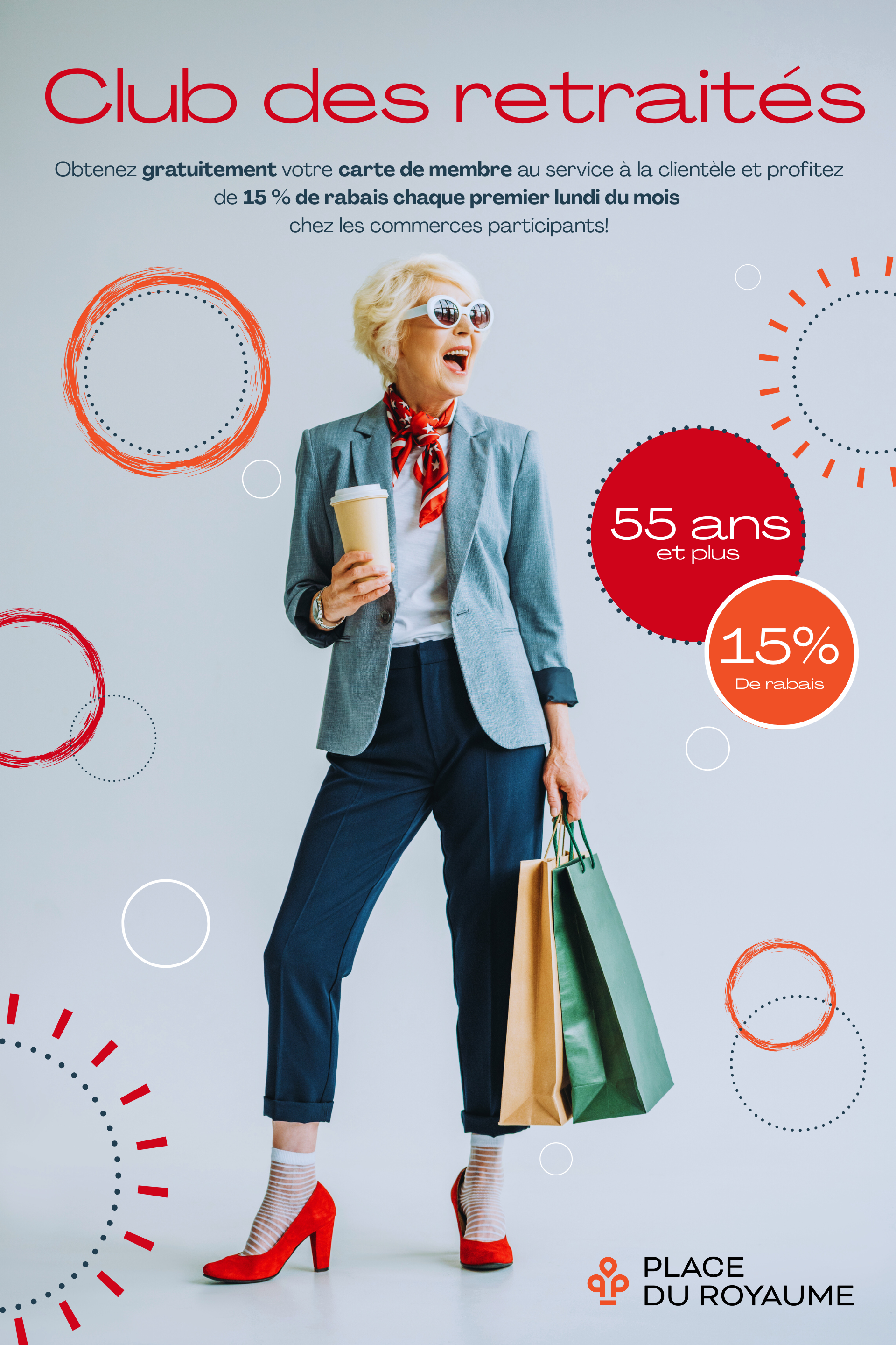 Devenez membre du Club des retraités! Le premier lundi de chaque mois, sur présentation de votre carte de membre, bénéficiez d’un rabais de 15 % sur la marchandise à prix régulier chez les commerçants participants. Carte et informations disponibles au service à la clientèle, situé près de l’entrée 6.